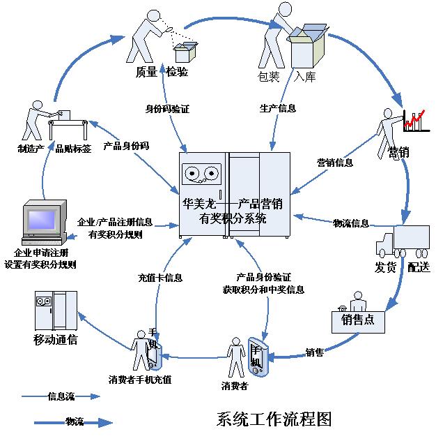 “華美龍產(chǎn)品防偽查詢與積分營(yíng)銷(xiāo)系統(tǒng)”是在華美龍防偽網(wǎng)絡(luò)系統(tǒng)的基礎(chǔ)上,以“產(chǎn)品身份編碼”(通常稱為防偽編碼)為信息源,消費(fèi)者在購(gòu)買(mǎi)產(chǎn)品時(shí),通過(guò)電 話、手機(jī)短信、互聯(lián)網(wǎng)絡(luò)查詢驗(yàn)證產(chǎn)品真?zhèn)螘r(shí),系統(tǒng)在驗(yàn)證回復(fù)產(chǎn)品真?zhèn)涡畔⒌耐瑫r(shí),自動(dòng)按產(chǎn)品銷(xiāo)售企業(yè)所設(shè)定的積分、獎(jiǎng)勵(lì)規(guī)則給該消費(fèi)者(積分用戶)進(jìn)行積 分、兌獎(jiǎng)、抽獎(jiǎng)。以達(dá)到激勵(lì)消費(fèi)者購(gòu)買(mǎi)產(chǎn)品、提高產(chǎn)品防偽查詢率;遏制假冒產(chǎn)品市場(chǎng),提高客戶忠誠(chéng)度、穩(wěn)定新老客戶;擴(kuò)大產(chǎn)品宣傳力度,提升企業(yè)品牌效應(yīng) 和市場(chǎng)競(jìng)爭(zhēng)能力的目的。