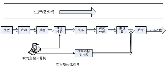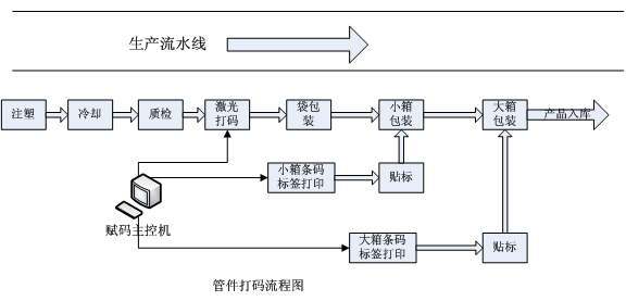 2.      管件通過激光打碼的方式,每個管件上打印一個防偽防竄貨碼。管材通過油墨噴碼或者激光打碼的方式,每個管材上打印三個防偽防竄貨碼。