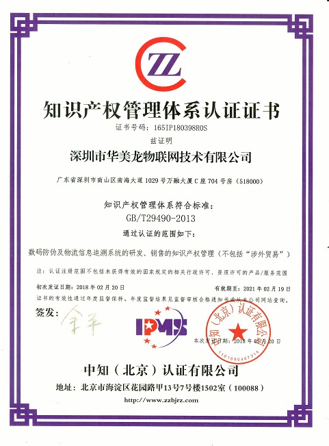 榮獲知識(shí)產(chǎn)權(quán)管理體系認(rèn)證證書